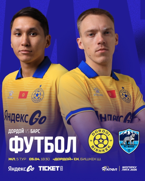 В это воскресенье, 5 апреля нас ждет увлекательный матч чемпионата Кыргызстана по футболу среди команд Жогорку Лиги 2026. Встречаются две сильнейшие команды по итогам прошлого года «Дордой» (Бишкек) и «Барс» (Каракол).
