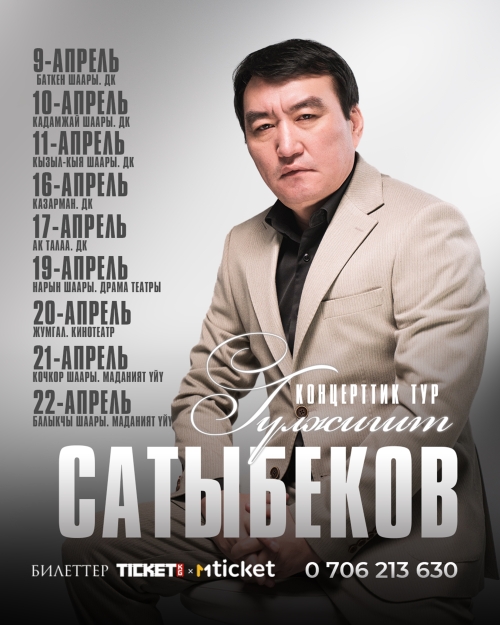 Сатыбековдун концерттик туру Кочкордо уланат. Бул сүйүктүү ырларды жандуу аткарууда угуп, жагымдуу концерттик маанай тартуулоочу сонун мүмкүнчүлүк.