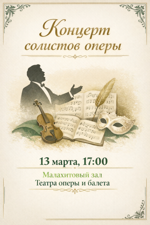 КОНЦЕРТ СОЛИСТОВ ОПЕРЫ состоится 13 марта в 17.00 в Малахитовом зале Кыргызского национального академического театра оперы и балета имени А.Малдыбаева. Для зрителей прозвучат популярные произведения зарубежной, русской и национальной классики.