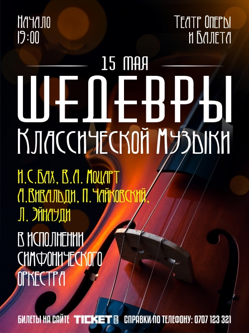 В программе концерта Гениальная музыка Вивальди, Чайковского, Моцарта, Баха, Эйнауди др. композиторов — в незабываемом оркестровом воплощении.