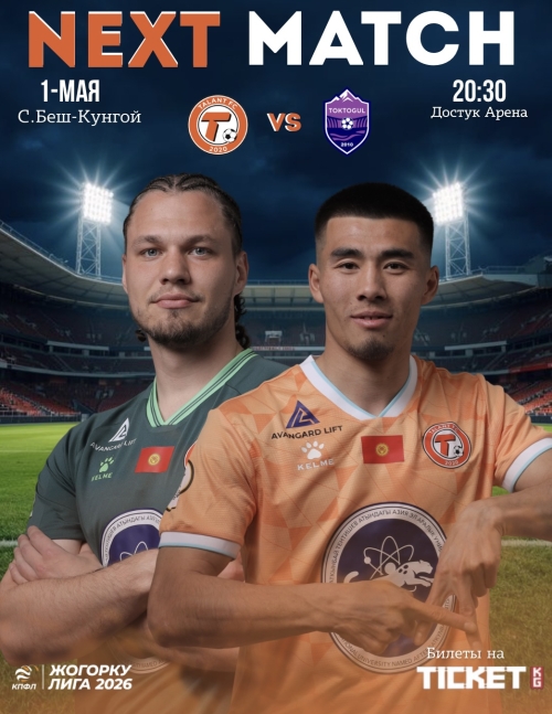 Уже 1 мая в рамках 9-го тура Высшей Лиги Кыргызстана состоится захватывающий матч: «Талант» против «Токтогул»!