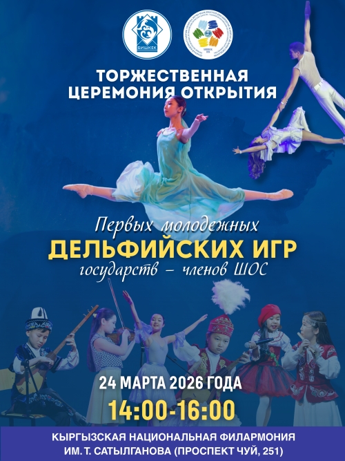 Урматтуу борбор калаанын тургундары жана коноктору! 2026-жылдын 24-мартында Бишкек шаарында Шанхай кызматташтык уюмуна (ШКУ) мүчө мамлекеттердин Биринчи Жаштар Дельфий оюндарын салтанаттуу ачуу аземи өтөт.